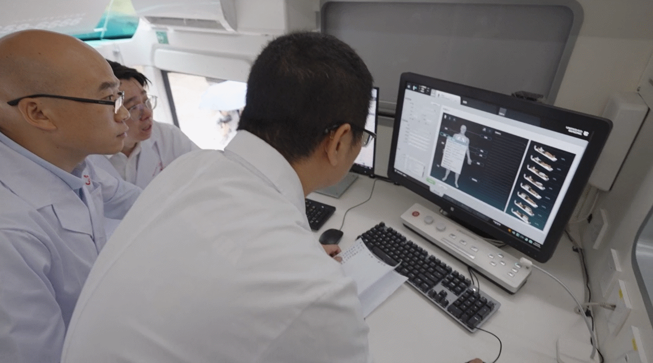2025年7月,联影移动医疗公益大巴驶抵云南省曲靖市罗平县钟山乡,对村民完成了多项筛查:从扫肺结节、肺气肿、骨密度,到查青光眼、白内障、斜弱视和色觉异常等眼部疾病。
